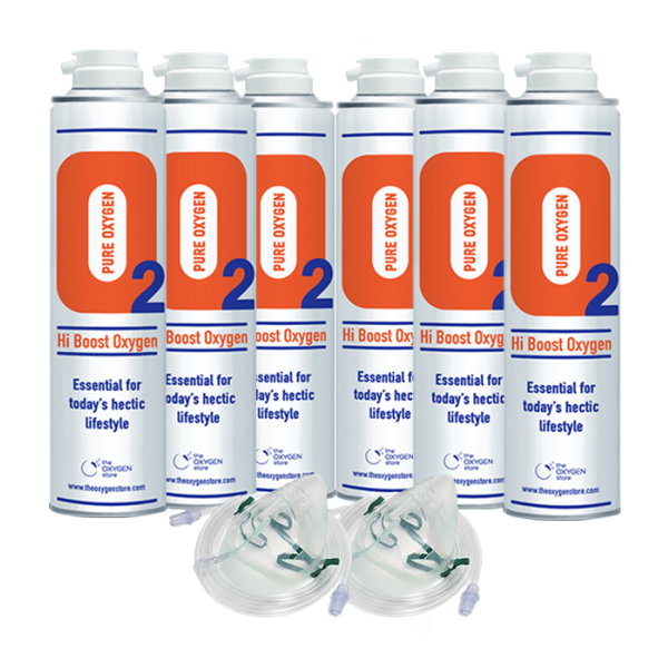 O2 Oxygen cans are filled with 99.5% pure oxygen and 8 - 10 breaths are sufficient to feel noticeably better, quickly.
